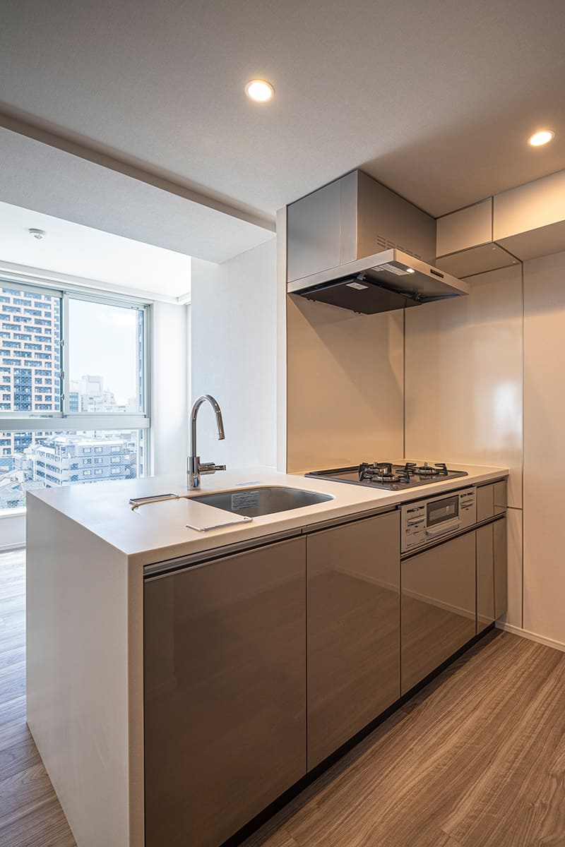 | 設備 | ガス:都市ガス, インターホン:TVモニター付き, オートロック, デザイナーズ, フローリング, 全居室フローリング, ベランダ・バルコニー, 収納スペース, ウォークインクローゼット, シューズウォークインクローゼット, バス・トイレ:別室, シャワー, 浴室乾燥機, 洗濯機置き場:室内, ガスコンロ設置済, ガスコンロ口数(2), コンロ種類:都市ガス, システムキッチン, エアコン, BS, CS, インターネット使用料無料 |